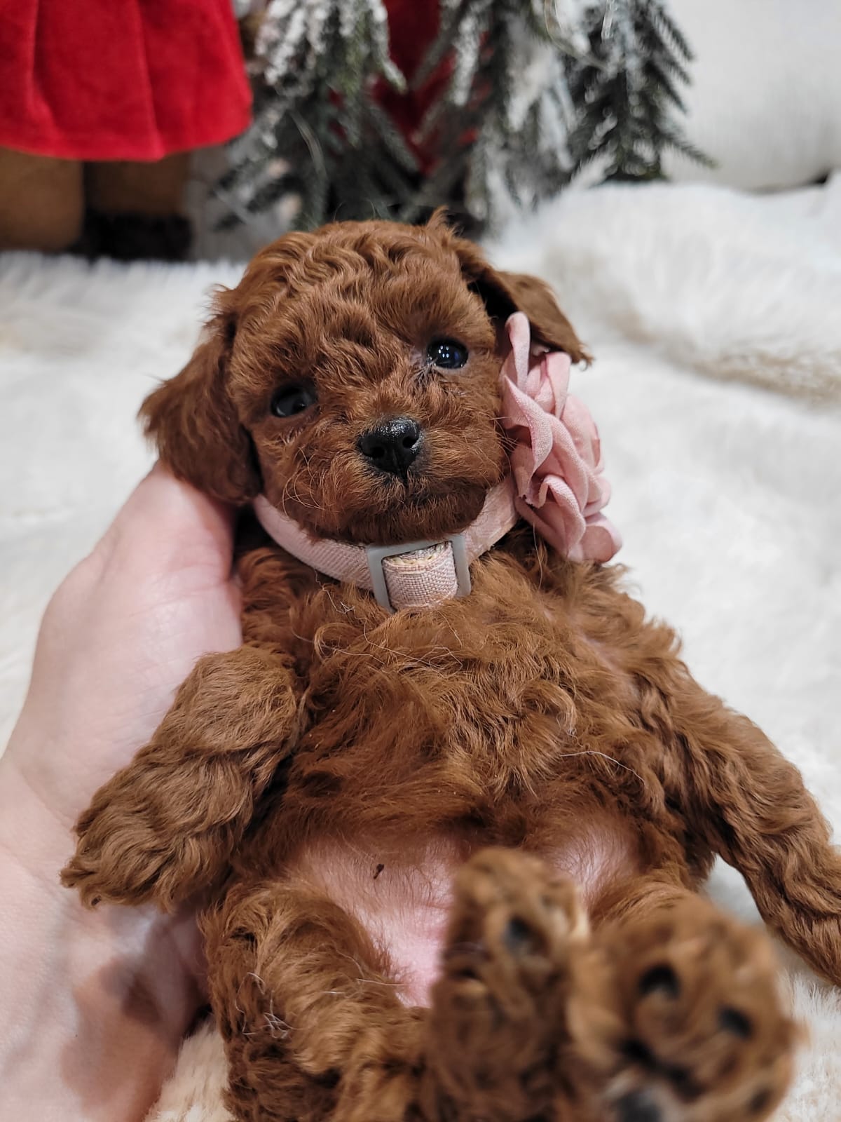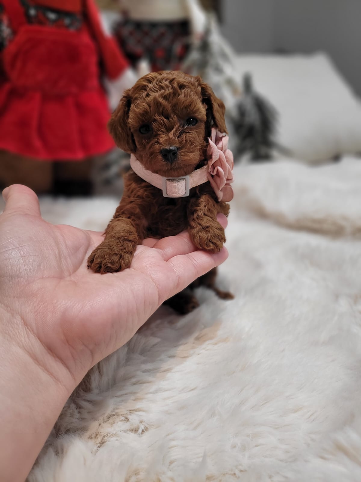 Helen is een prachtig en charmant Toy Poodle teefje met een diepe Red vachtkleur. Zij is speels, slim, aanhankelijk en zeer mensgericht, precies wat Toy Poodles zo geliefd maakt.