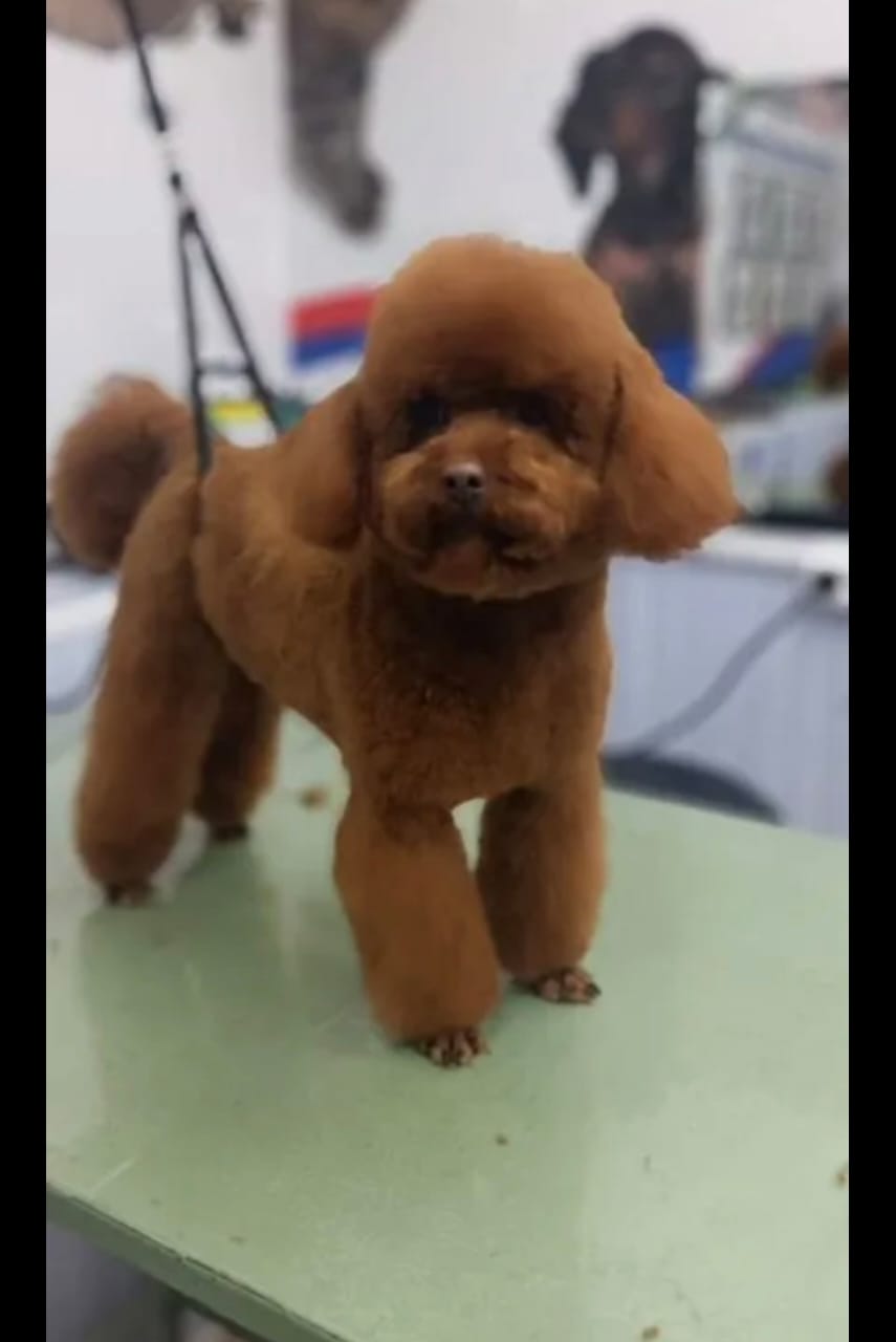 🐩 Over Reina – Toy Poodle meisje (Red, FCI) Reina is een elegant en lief Toy Poodle meisje met een prachtige warme Red kleur. Zij is het kleinste pupje uit een nest van drie en heeft een bijzonder verfijnd postuur. Net als haar broer en zus beschikt Reina over een FCI-stamboom, wat staat voor gecontroleerde afkomst en verantwoord fokken.